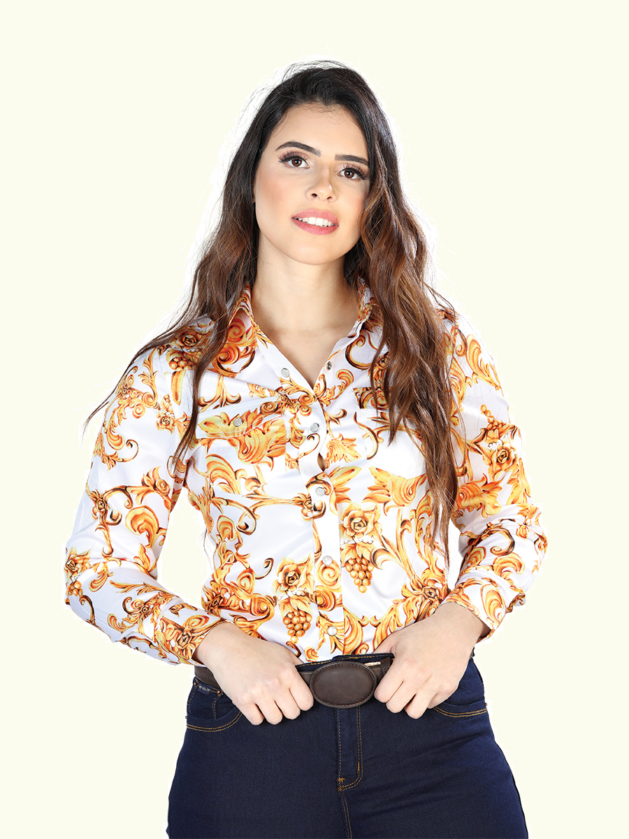 La camisa “Oro Imperial” es una prenda de manga larga diseñada para destacar con elegancia y un toque artístico. Confeccionada en una suave mezcla de 97% poliéster y 3% lycra, ofrece comodidad y ajuste perfecto. Su estampado en tonos dorado sobre fondo Off White evoca lujo y sofisticación, ideal para ocasiones casuales vaqueras, donde quieras lucir con estilo y distinción.